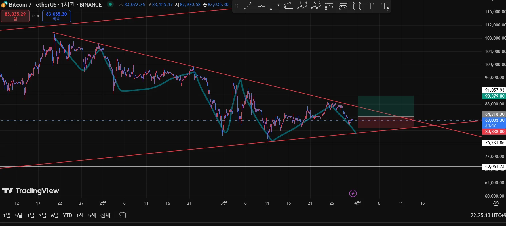 마음가짐 : 코인거래를 처음 시도하여 아직은 너무나 미숙한 부분이 많다고 생각합니다. 작도한 지지저항선이나 추세선에 대한 확신이 정확하지않고, 레버리지 설정도 다양한 시도를 통해서 리스크 관리를 해야한다고 생각했습니다. 모의 트레이닝이지만 더 신중하여 배운부분을 잘 활용해볼 생각입니다.