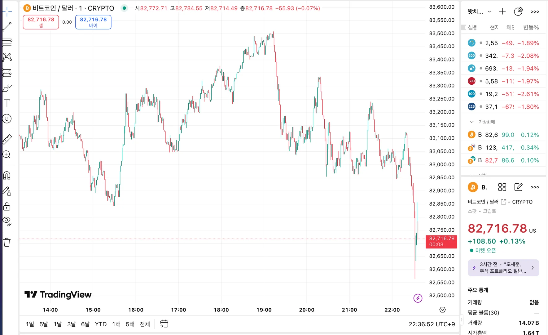 이후 차트를 살펴보니 82920까지 올라와 매도하였고, 실제로 평행 부근에 못미친 82940 부근에서 평행한 저항선 위치에서 다시 딱 떨어지는 모습을 보였습니다.