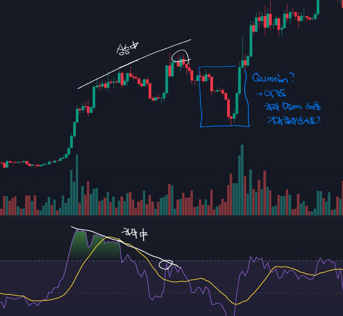 기본적으로 가격등락에 비례하는 것으로 보이며, 다이버전스와 같이 특별한 상황이 아니면 과매도 구간에서 매수, 괘매수 구간에서 매도해야 하는 것처럼 보입니다. 물론 100%는 아니며, 다양한 작도를 통해 알아봐야겠지만요.