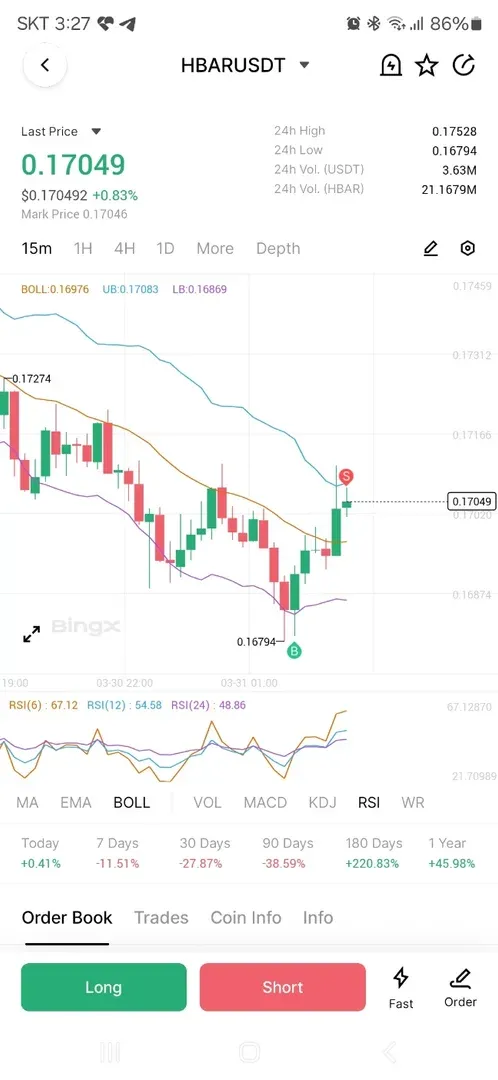RSI 15분봉상 과매도 종목 sl10% 설정 후 익절하고 나왔습니다.