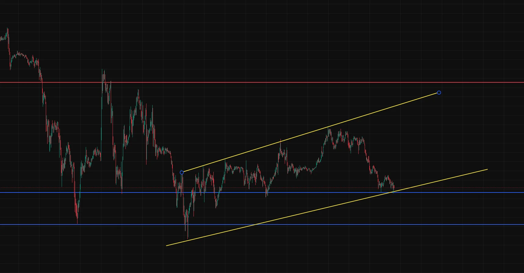 지지,저항과 추세선 1시간 봉 차트입니다.