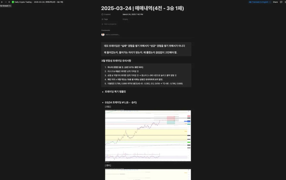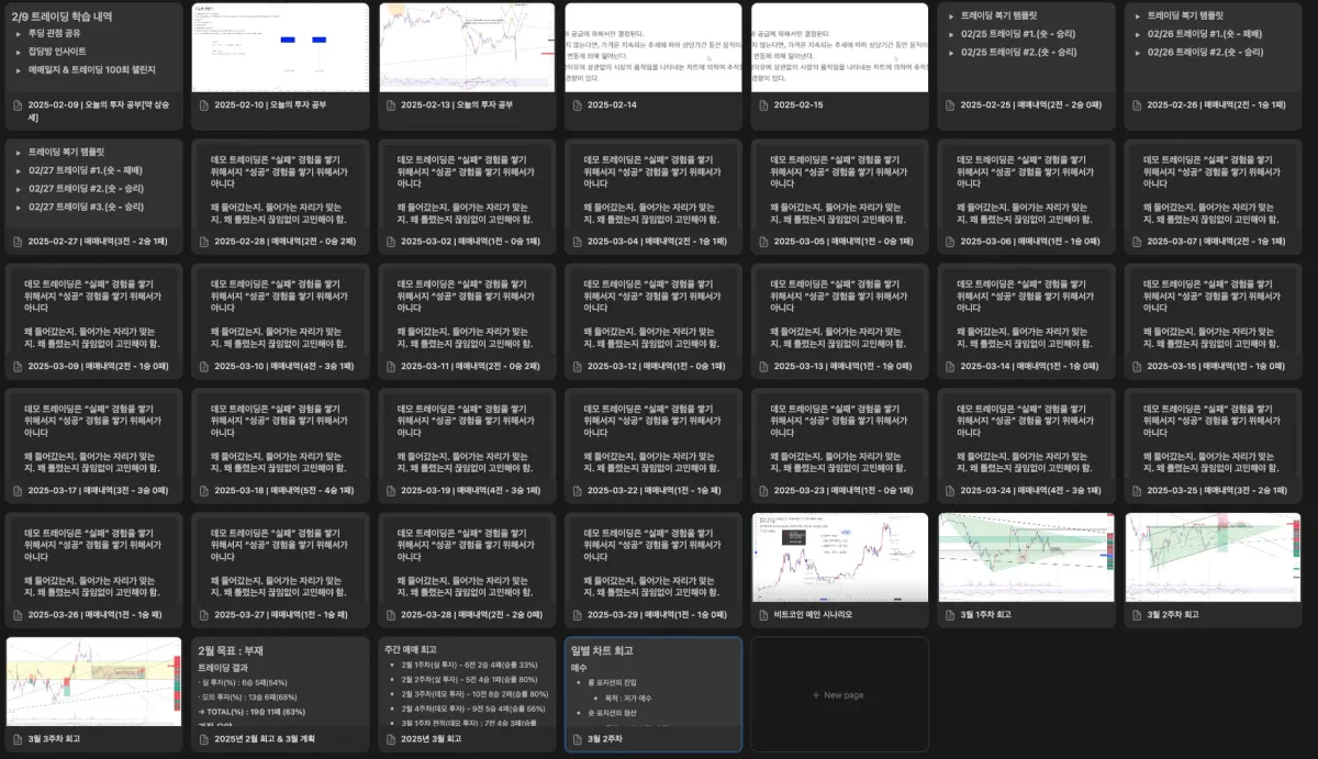 노션은 2월 25일부터 활용했지만, 2월 100일 챌린지 시작부터 1) 매매 단위 2) 주간 단위 3) 월 단위 하루도 빠짐 없이 복기를 하면서 정말 많은 자산이 되고 있다고 생각합니다.