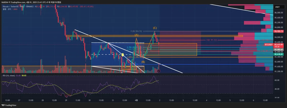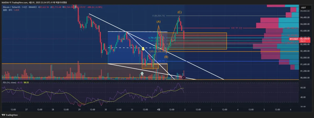 1차: 82.55 큰 음봉 위에서 리스크 관리 비중 50%