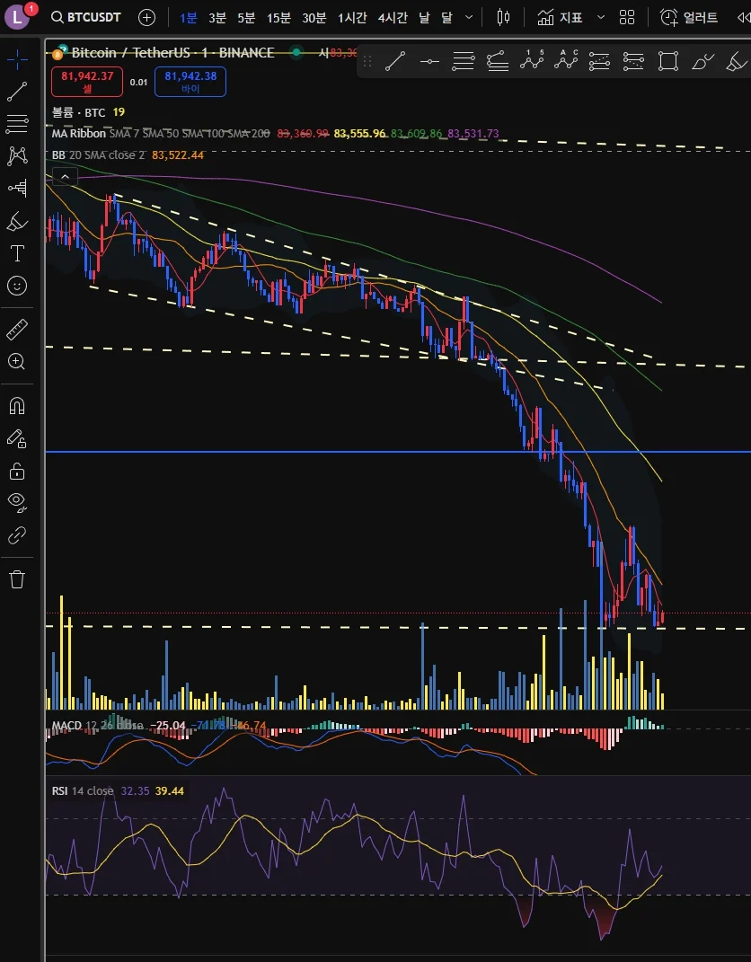 쌍바닥 찍고 상승 다이버전스 상황입니다.