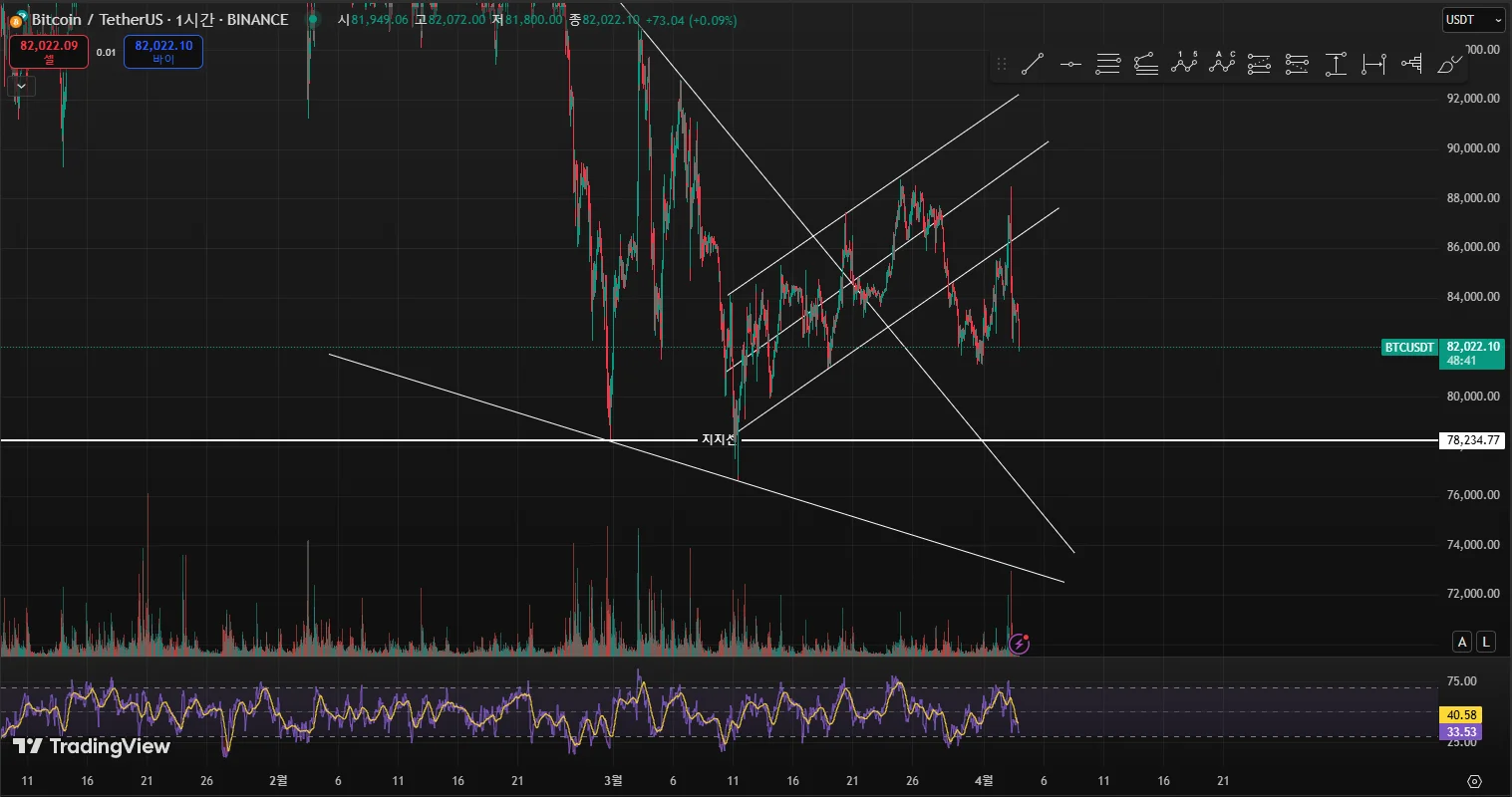 30일 챌린지[30일 챌린지 22기 1주차] BTCUSDT 일봉 지지 저항 추세선 작도 입니다