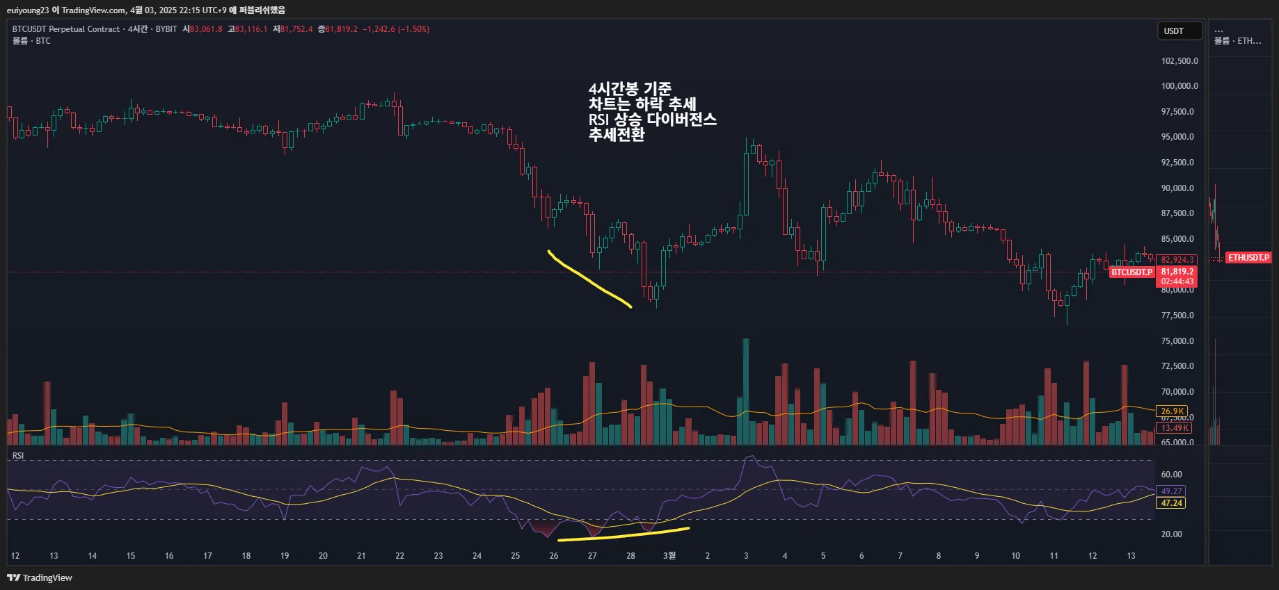 [30일 챌린지 22기 1주차] BTCUSDT 일봉 지지선, 상승 하락 추세선 작도