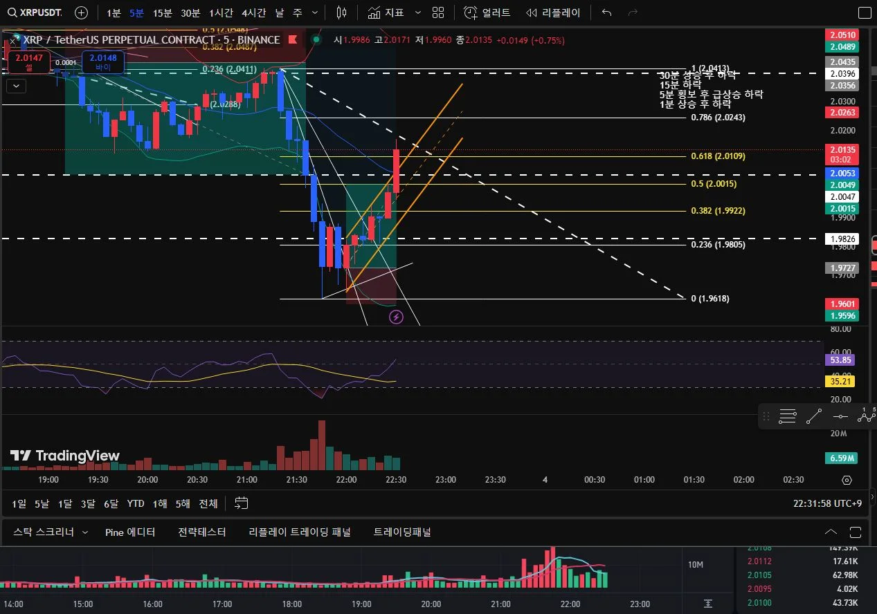 위험성 : 하락세가 강함 -> 하지만 위 근거들로 하락세 중 피보나치 되돌림 0.5까지 갈 수 있음을 확신 후 진입