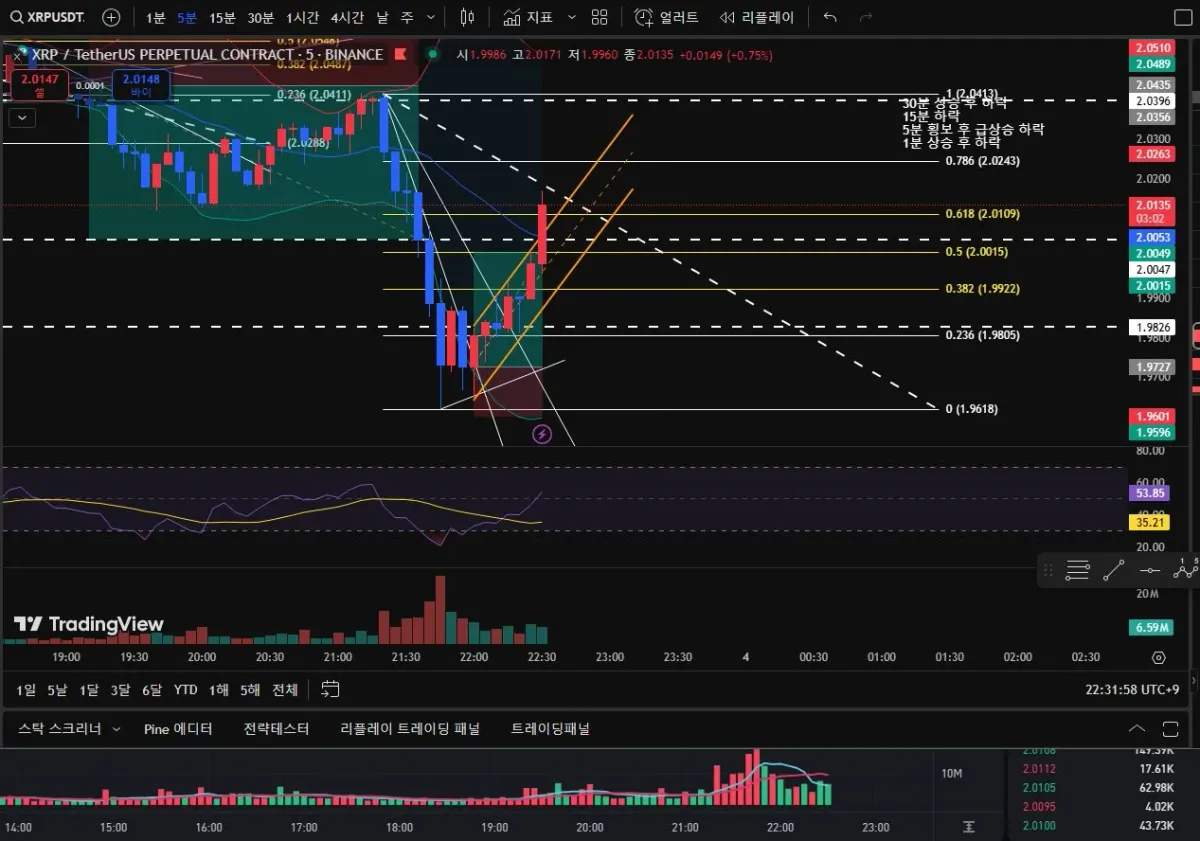 위험성 : 하락세가 강함 -> 하지만 위 근거들로 하락세 중 피보나치 되돌림 0.5까지 갈 수 있음을 확신 후 진입
