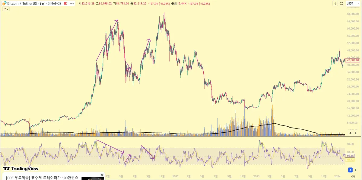 거래량은 증가하는데 RIS는 하락하고 있었습니다. 고점을 찍고 큰 하락으로 전환되는 걸 확인 할 수 있었어요.