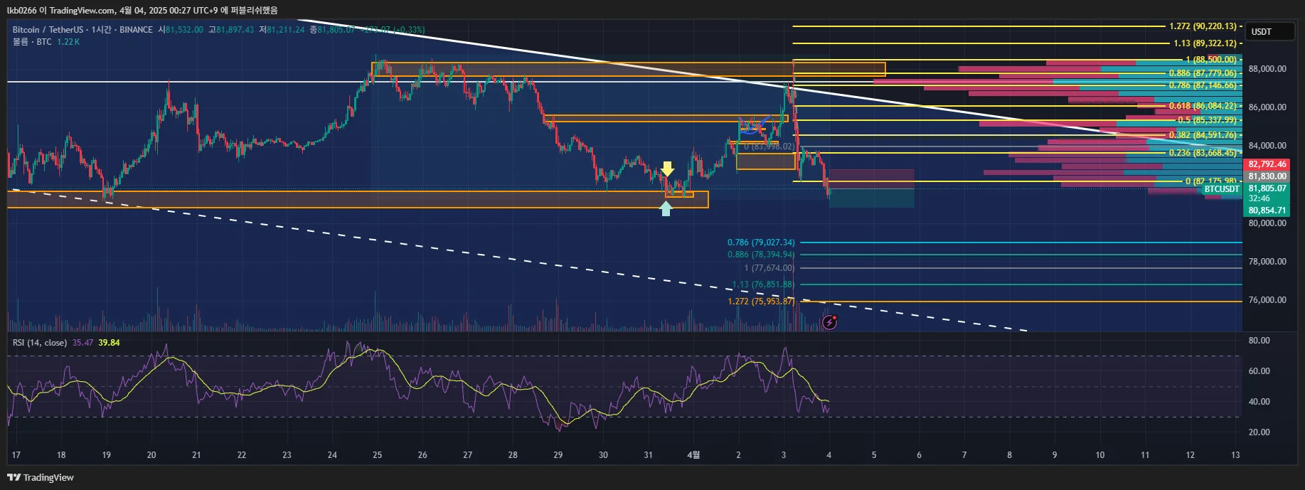- 관세 발표후 급락하였지만 OB가 반등과 지지, 저항 역할을 함(유효)
