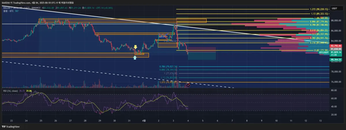- 관세 발표후 급락하였지만 OB가 반등과 지지, 저항 역할을 함(유효)