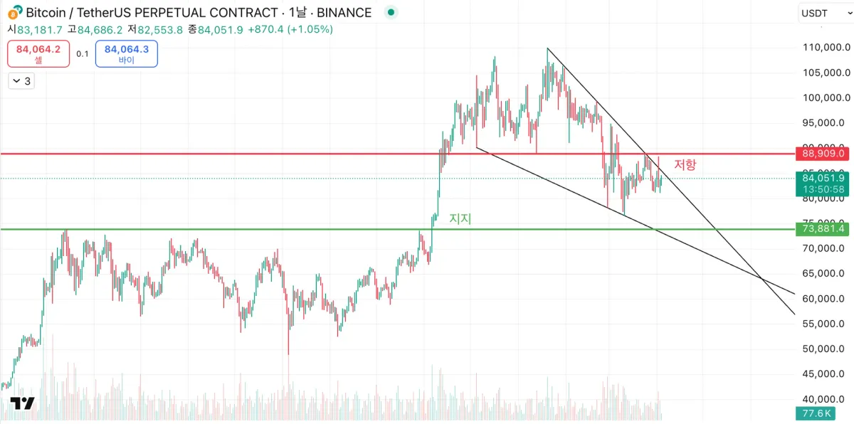 큰 프레임에서의 지지 저항 추세선 작도 해보았습니다.