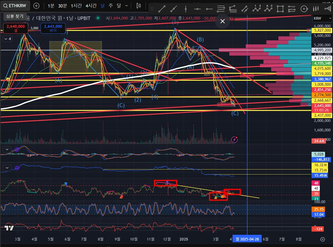 다만 2025년 3~4월에 상승 다이버젼스가 뜨면서 바닥을 다진후 반등하지 않을까 ? 예상해봅니다.