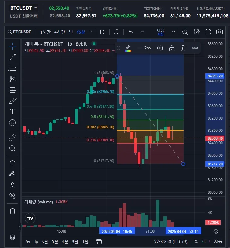 목표가는 0.382구간으로 잡았으며, 예상대로 0.382구간에서 익절함.