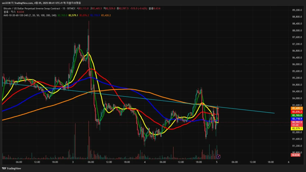 진입근거 지지및 저항선 근처에서 (볼린저밴드 이평선참고) 매도