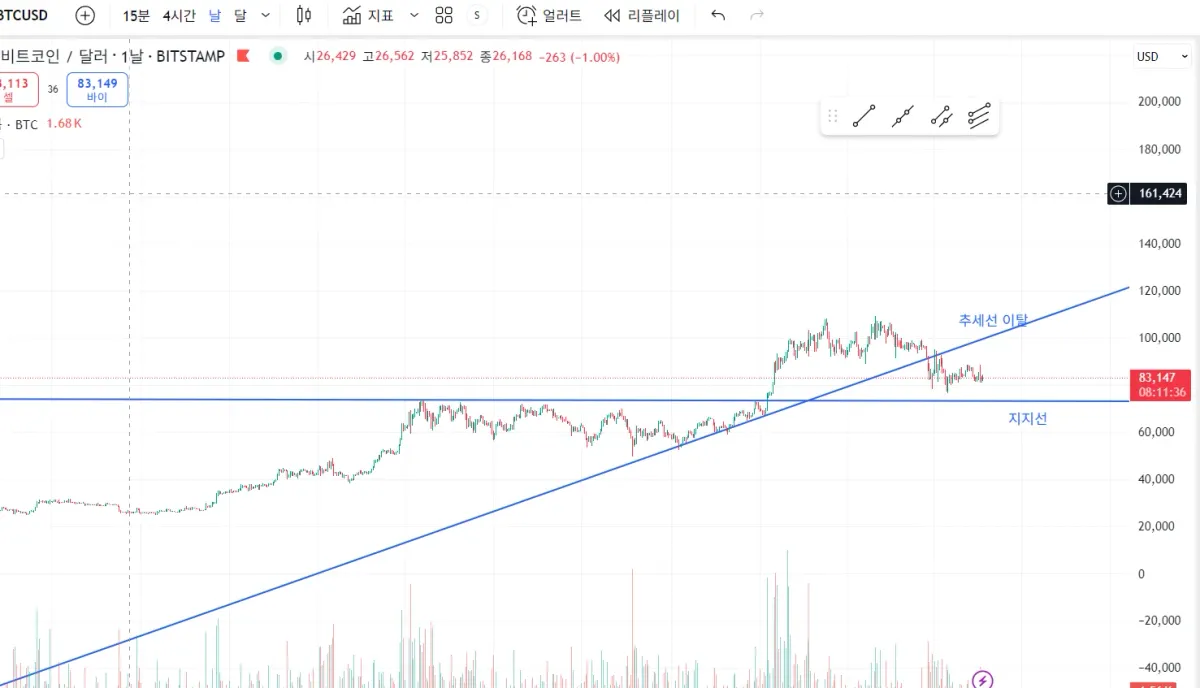 박스권에서는 하방을 보고있으며...추세선을 돌파할시 롱 포지션 진입이 어떨까 생각해봅니다. (지금은 알트로 시드 모으는 중) 금리 인하시 롱포지션 진입예정