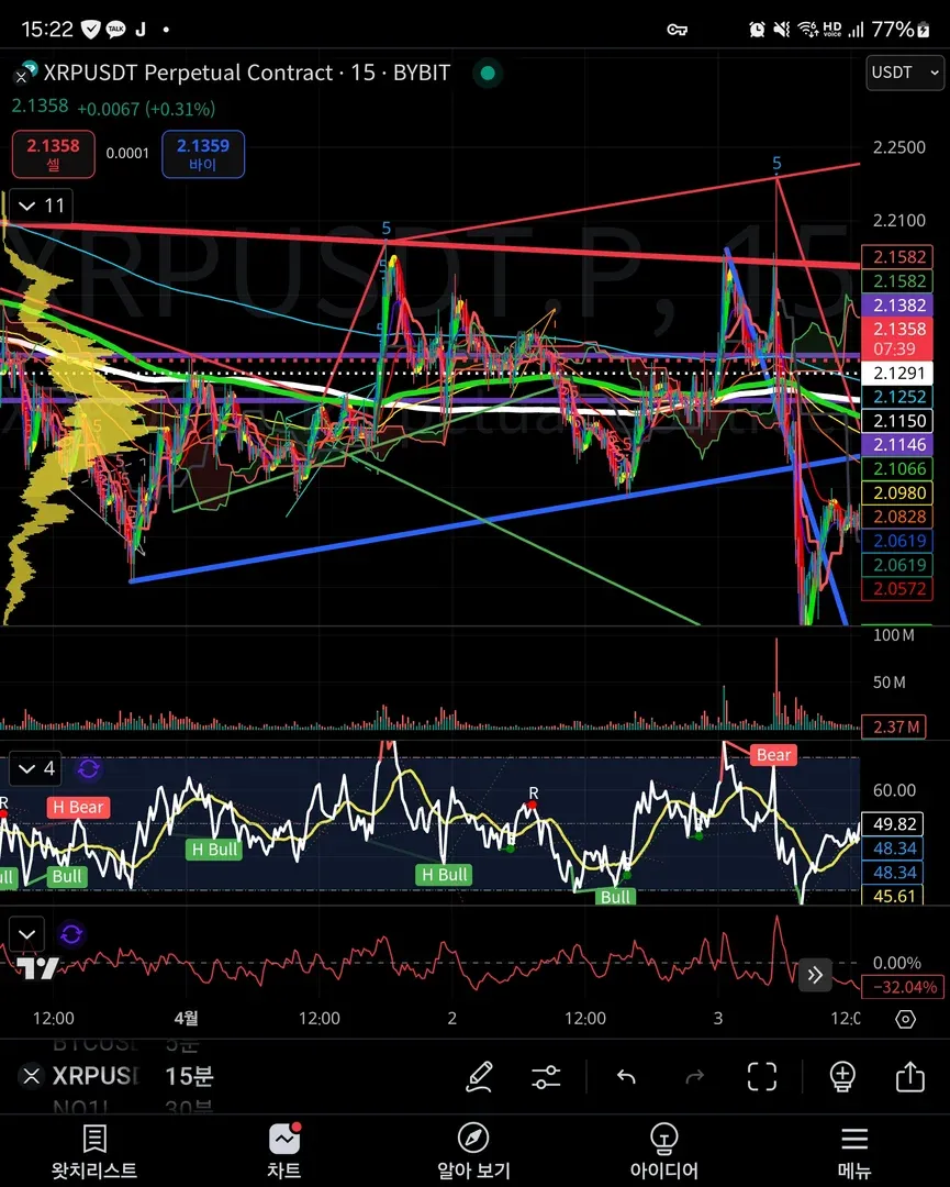 약하지만 다이버전스 발생, 하락 우세에서 분할 진입 후 짧은 손절로 대응했습니다. 다만 너무 짧았고 올렸다 내리면서 손절이 먼저 나갔습니다