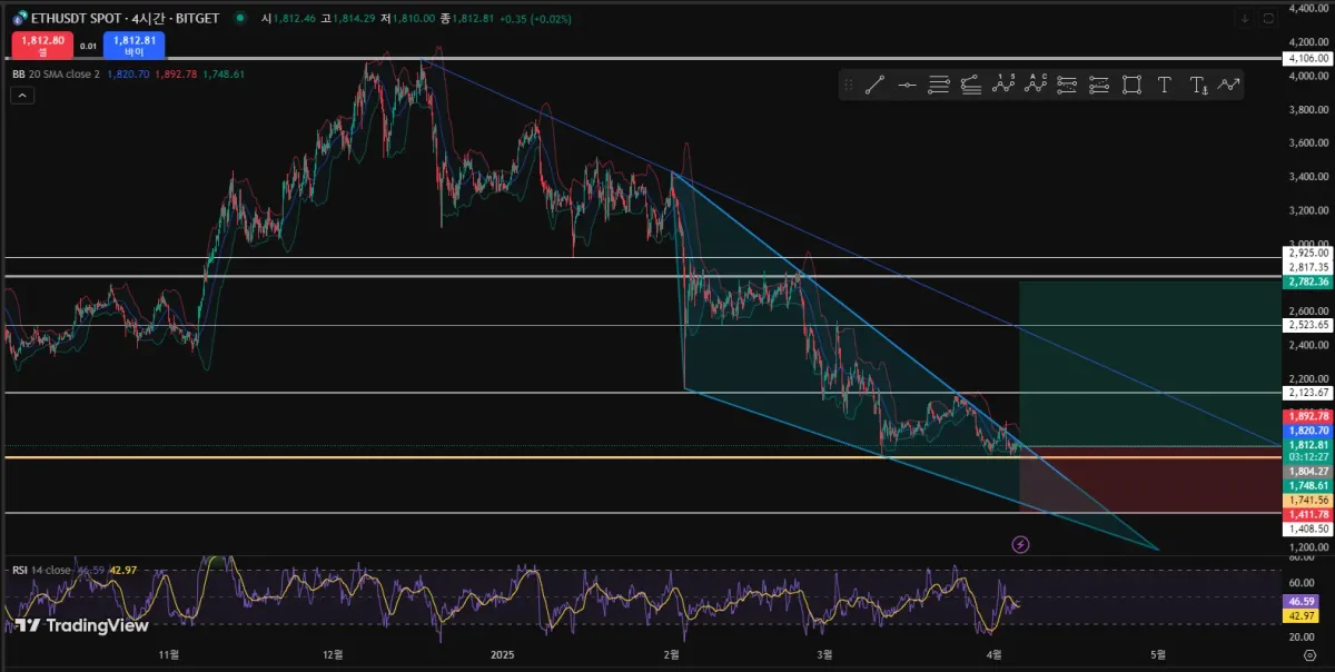 장기간에 걸친 하락 쐐기형 패턴과 몇년동안 유효한 지지저항 역할을 했던 노란색 가로선에 이미 2번 지지를 받았고 곧 탈출을 목전을 하고 있다. 또한 거래량도 점차 증가하면서 상승 가능성이 농후하므로 진입하였습니다