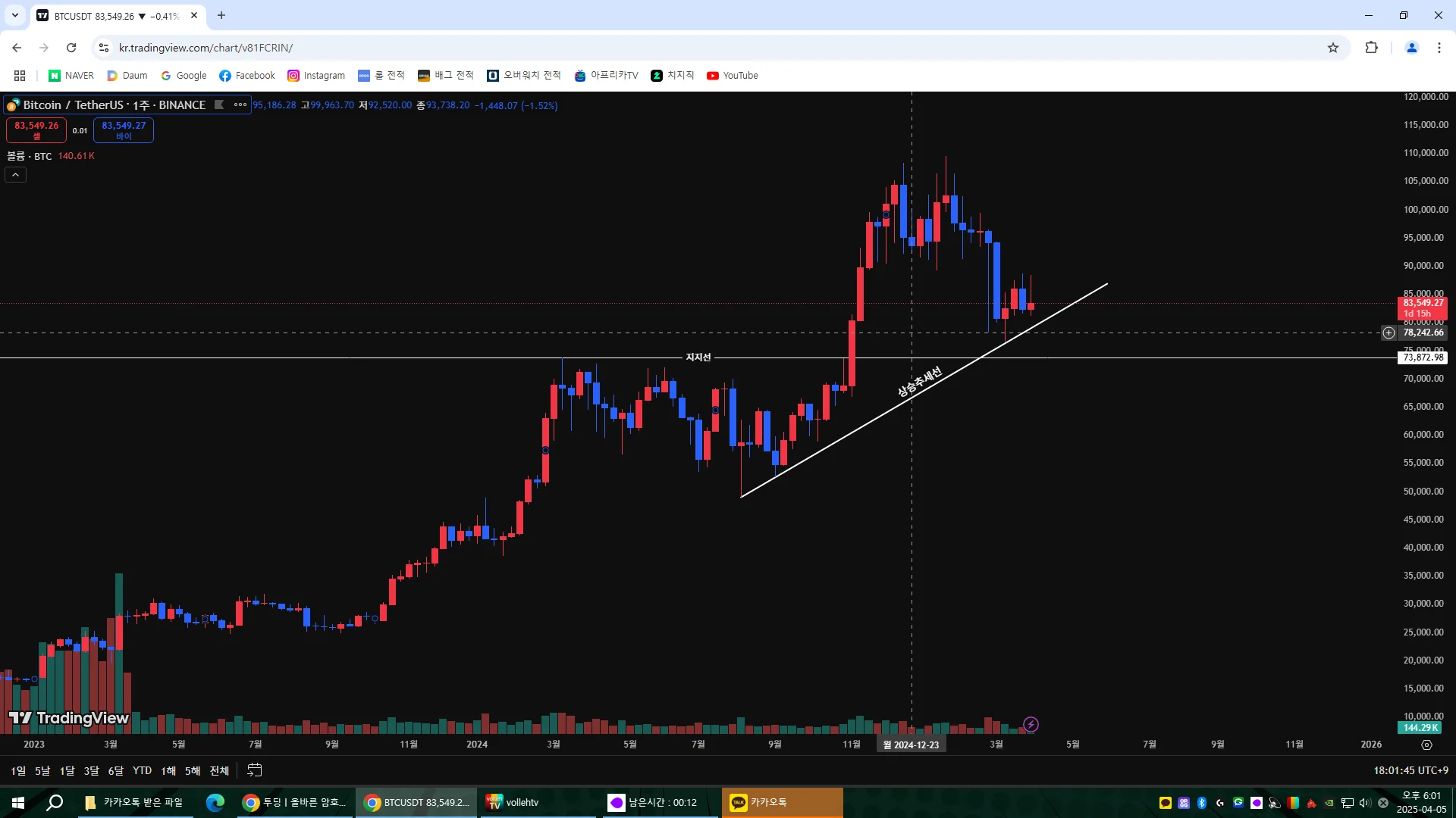 맞는지 모르겠지만 강의를 들으면 작도한 지지선과 추세선입니다.
