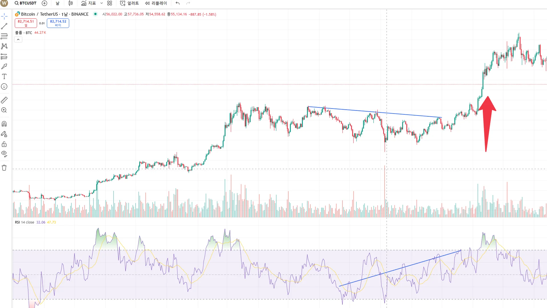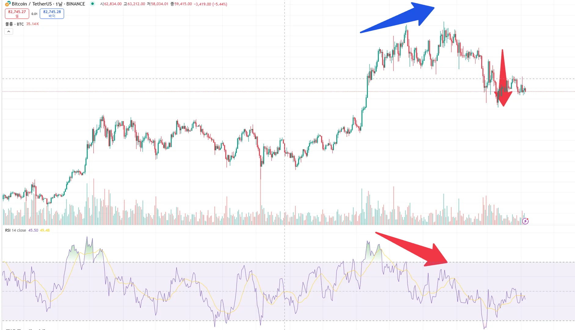 하락 다이버전스와 상승다이버전스의 모습 입니다.