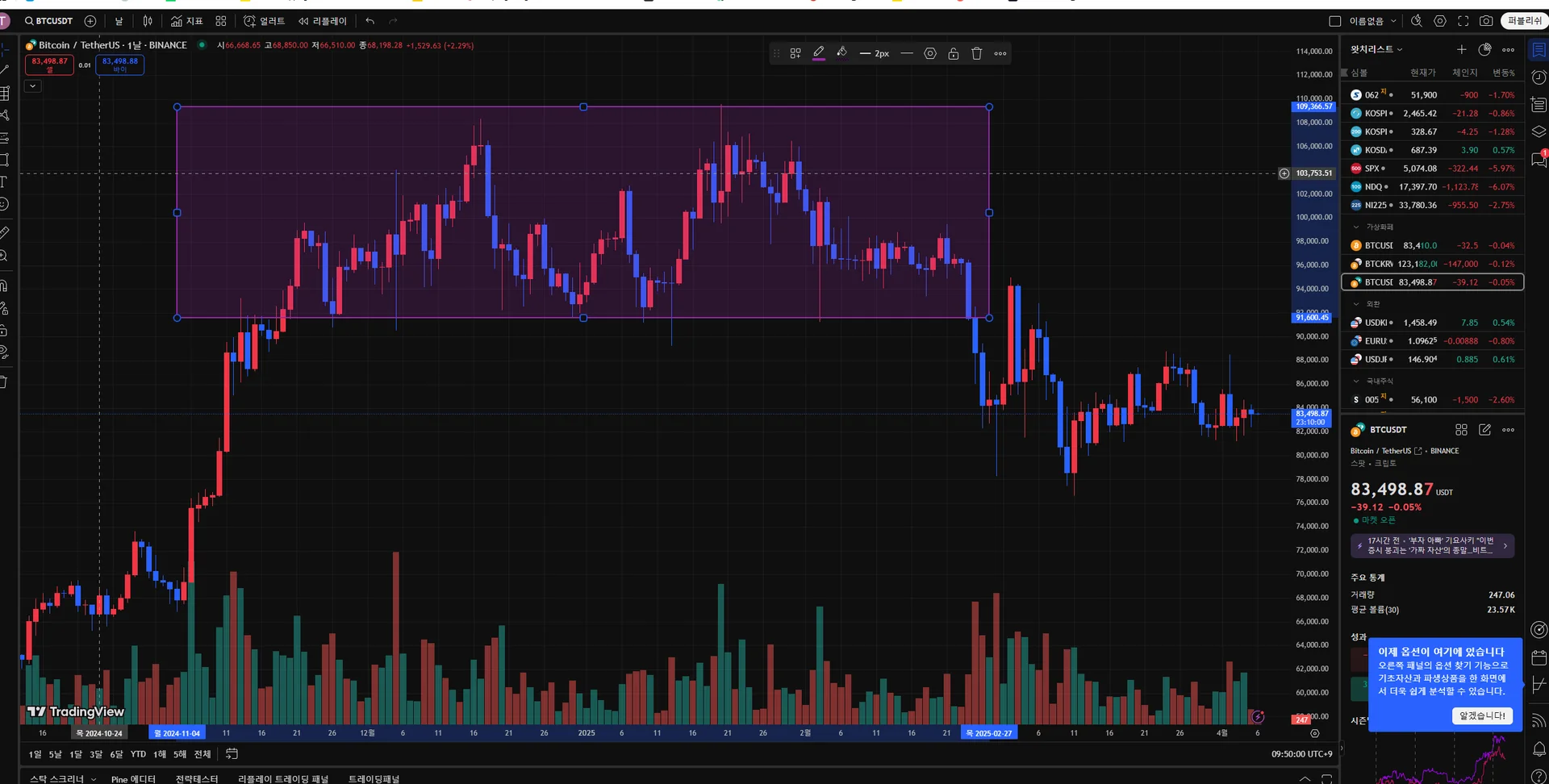 이 박스권 아래는 지지선, 위쪽은 저항선으로 보면 될 것 같습니다