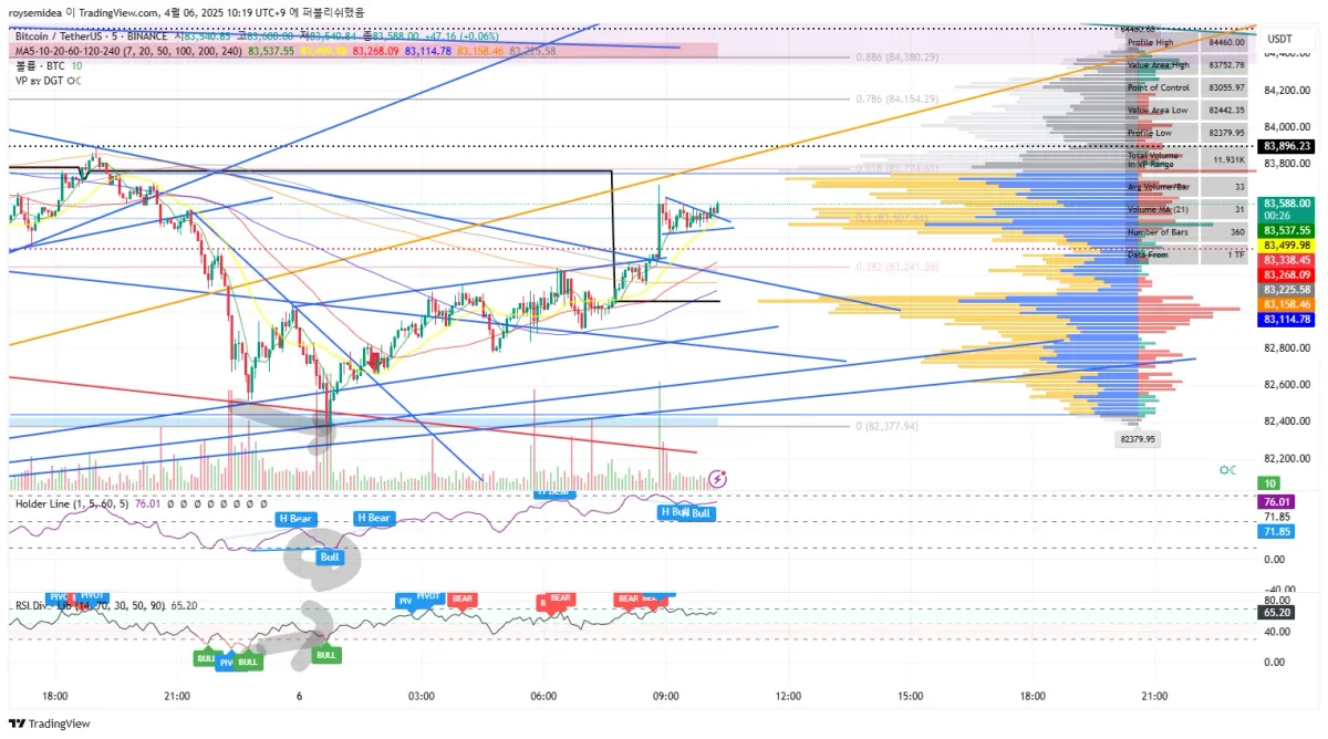 - 85K에 단무지들 많아서 현재 분할 익절하고 손절가 앞으로 땡겨 놓고 85K에 익절 할 예정임.