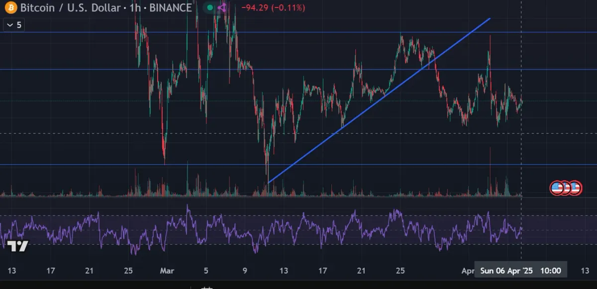 rsi 지표 추가했습니다. 1시간봉 상에서 현재 과매수 상태에서 벗어나고 수렴하는 상황이라고 볼 수 있습니다.