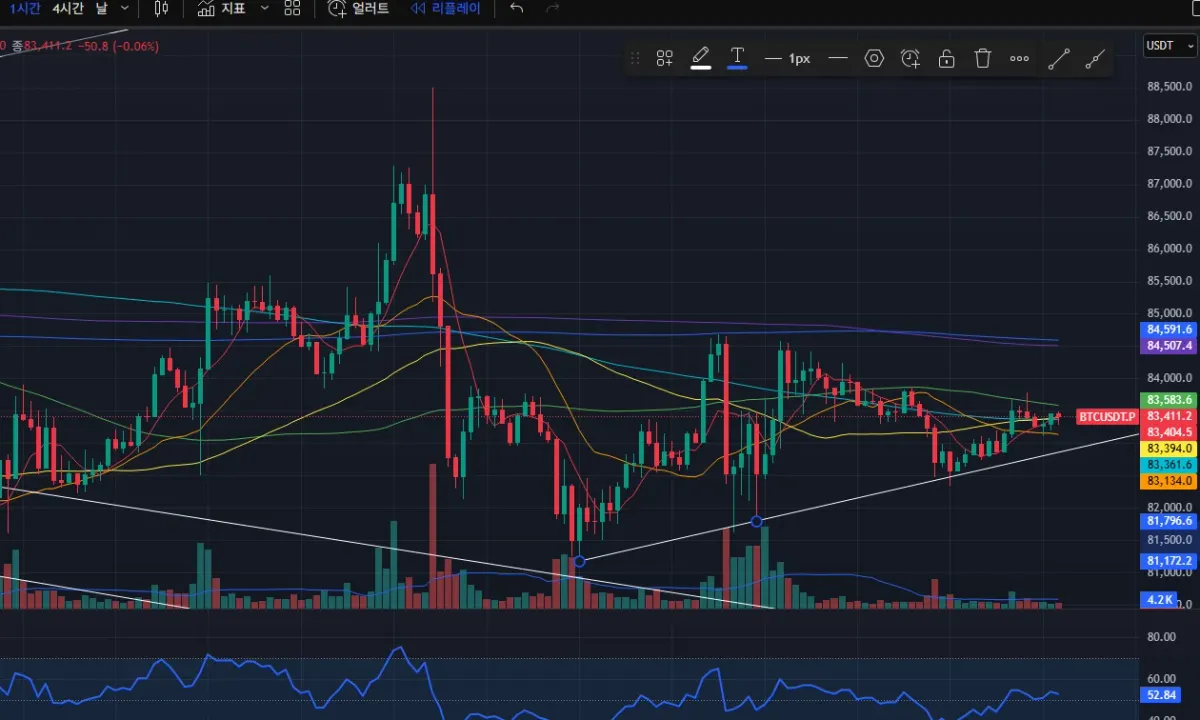 결과 : 하락으로 SL 채결, 포지션 종료(현재 83100 부근)
