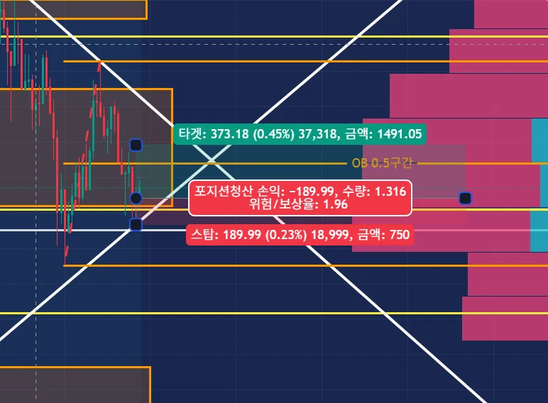 복기 : 거래량이 많은 가로 추세선을 그어두었었는데 가로 추세선 밑으로 해놨으면 손절 안 당했을 가능성이 높았겠다. 저점을 깬 직후로 하면 안되겠다.