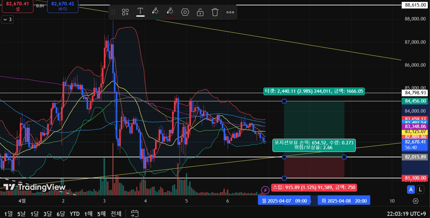지지와 저항 및 추세선을 분석하여 롱 포지션 매수가를 선정해서 주문했습니다. 매수시 알람 오도록 설정해 놓고 매수되기를 기다리고 있습니다.