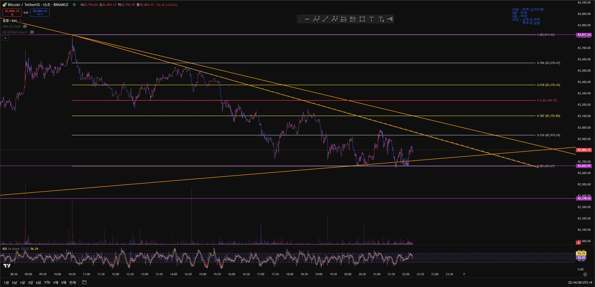 15분 기준 삼각수렴 패턴이 뚜렷해서