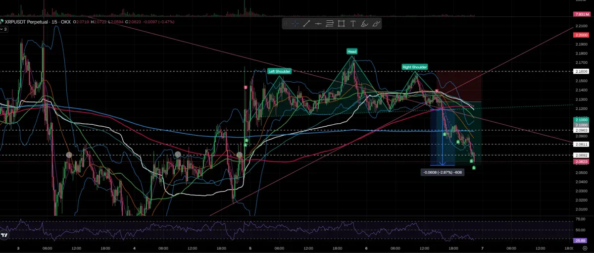 Head and shoulder 패턴 보이고 + 추세선 뚫길래 숏 진입.