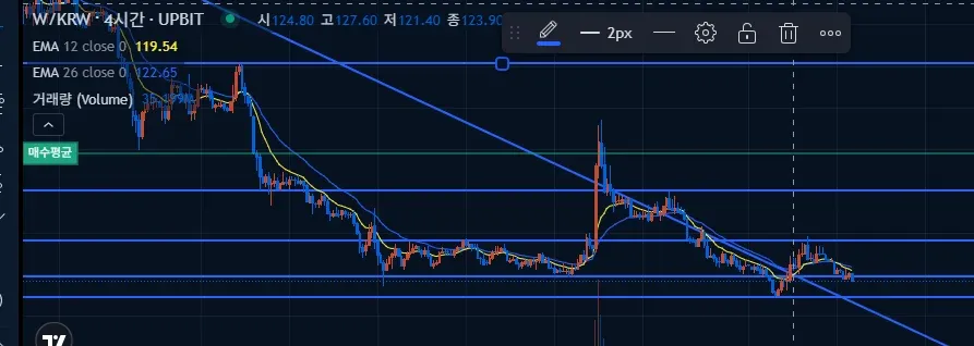 추세선 돌파하여 진입하였지만 다히 내려오고 저항맞아서 손실 보고 있습니다. 앞으로 기계적으로 손익비 계산하여 정확하게 하려고 노력하겠습니다.