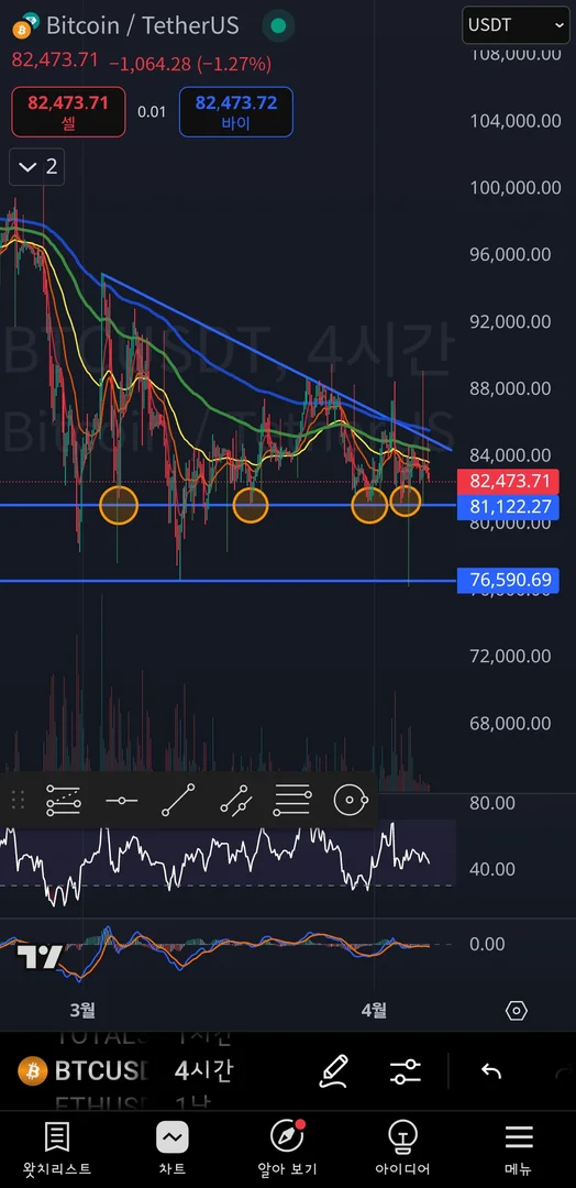 맨밑에 저점을 만들었던 곳을 2차 지지선으로 그어봤습니다