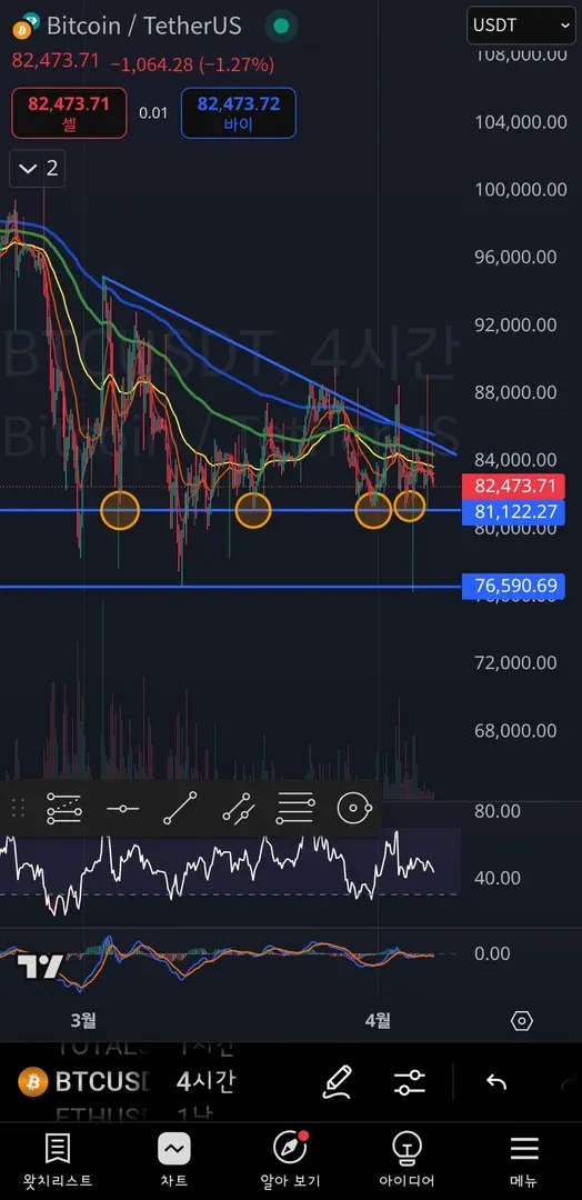 밑에는 4번의 지지가 있었던 곳을1차 지지선으로,