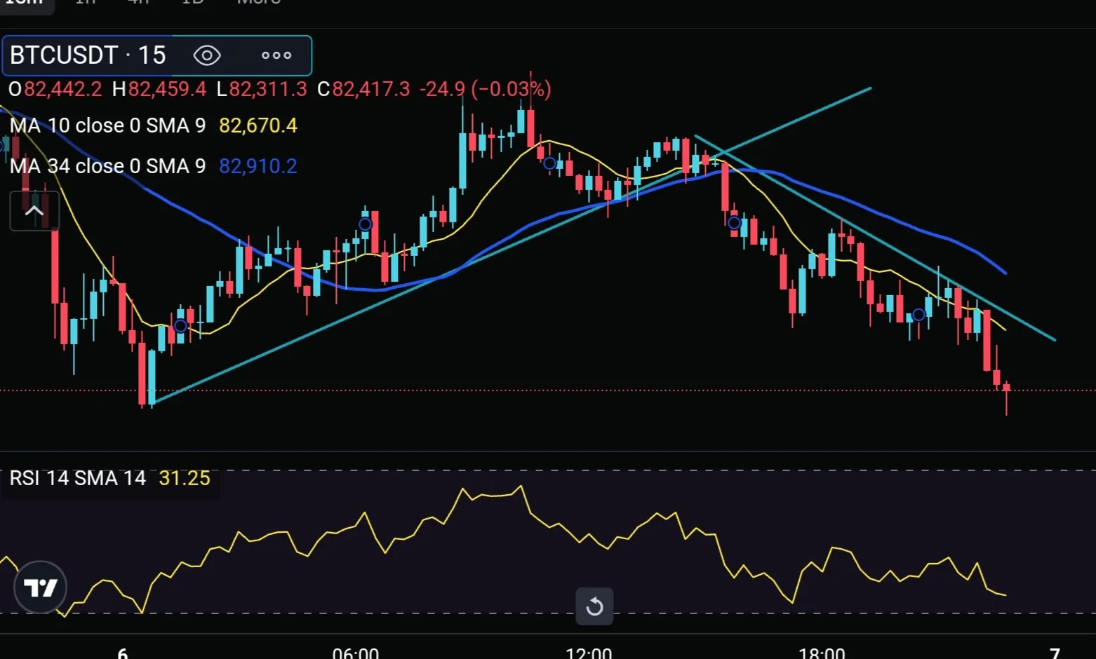 파동을 일으키다가 추세가 반전되고 추세선이 저항선이 되는 것을 보고 숏포지션에 진입하여 19.88%의 수익을 내었습니다
