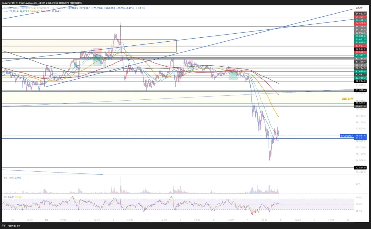 단기 이평선들이 눕는 과정에서 중장기 이평선들은 아직 올라오지만, 단기 이평과 캔들이 중장기 이평을 찌르면서 이평선을 눕히면 너무 좋은 숏 진입 구간이다. 라고 생각합니다.