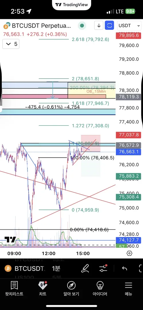 다만, 개인적으로 유의해야 한다고 생각한 부분은, 직전에서의 커버링이 더블바텀의 모향새를 띄고 있고, 이를 1:1로 보았을 때, 78k정도까지도 올라올 수 있지 않을까라는 생각이 좀 있어 이번 매매는 데모트레이딩을 활용하여 진입했습니다.