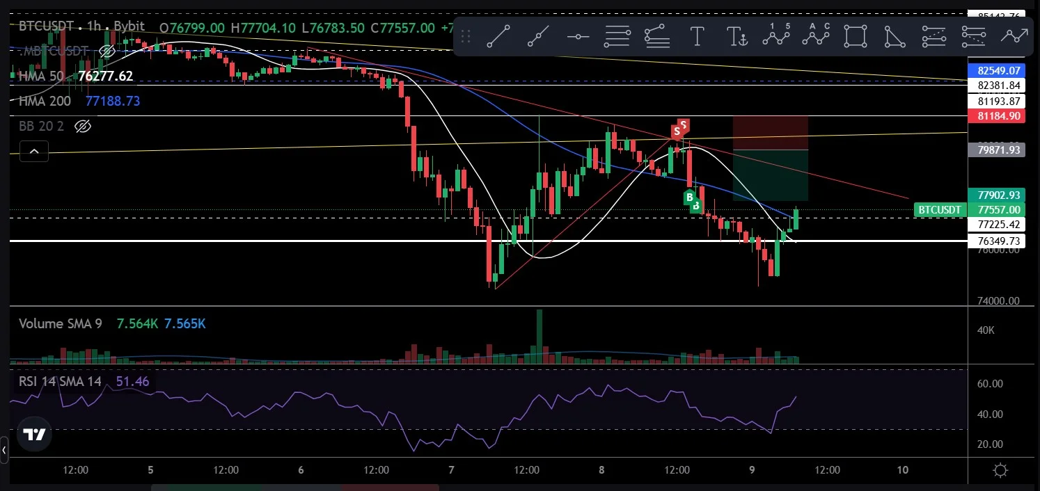 ① 1h 추세선에 저항 후 하락 후 다시 상승하며 1h 추세선과 1d 추세선이 닿는 부분에서 저항
