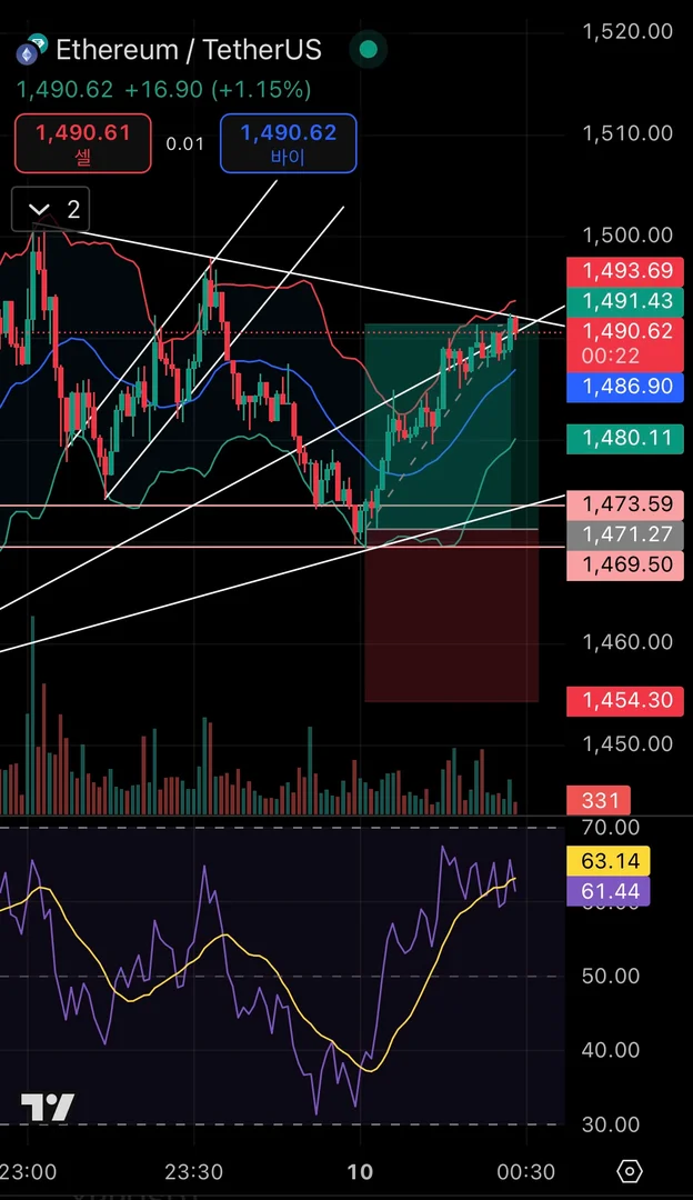 진입 했습니다. 손절가는 여러번 반응한 이전 고점,