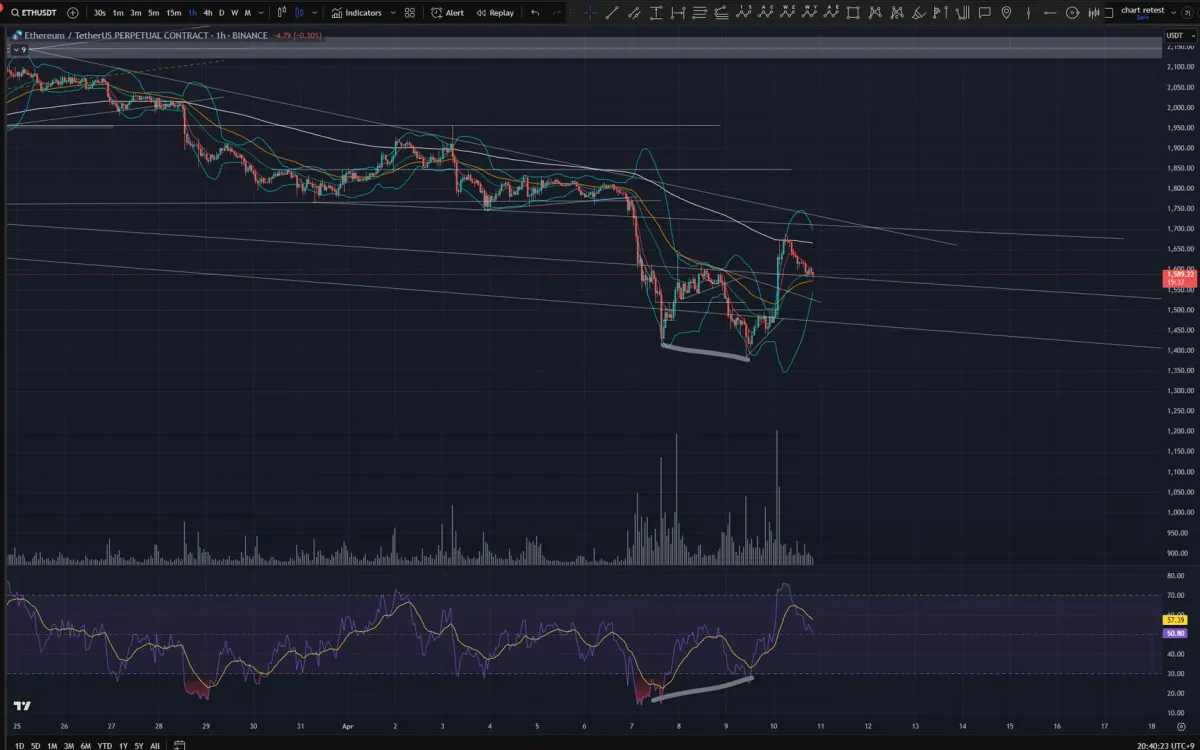4월 7일 이더리움이 바닥을 찍은 후 9일에 더 낮은 바닥을 찍었지만 rsi는 7일에 비해 올라간 모습을 보여주고 있다