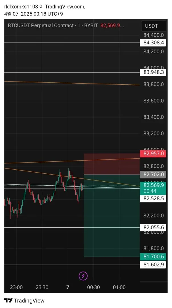 그어놓은 추세선을 계속 맞고 떨어지는 모습을 보여줘서 장대음봉 기대하며 고배율 손절짧게 진입