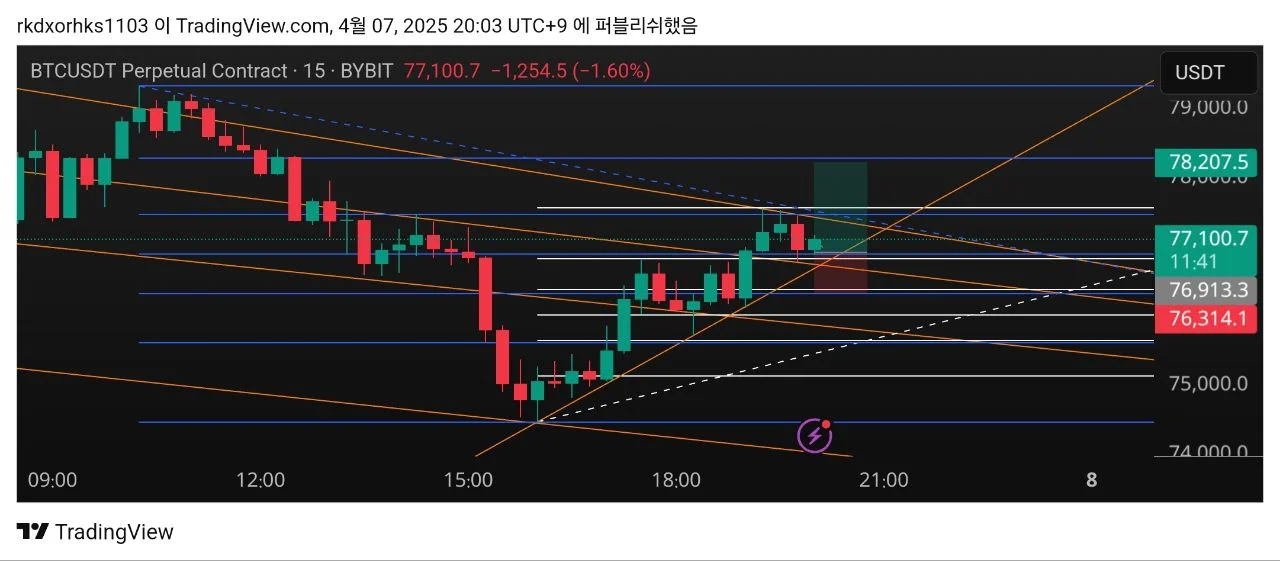 저점을 계속 높히고 있고 추세선이 깨지지 않았음. 피보나치 겹치는 구간에서 지지받길래 진입