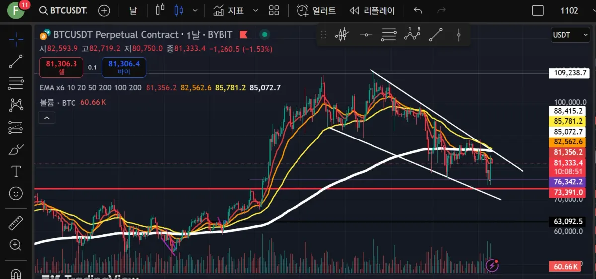 비트코인 지금상황은 다우이론 6단계중 약세국면 으로 공포단계로 분석됩니다.