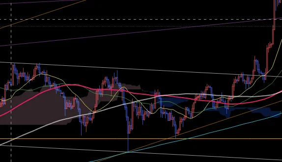 이동평균선 역배열 수렴후 상승, 노20 녹50 빨120 흰200 , 상승후 정배열 지수가 120선 이탈시 매도관점