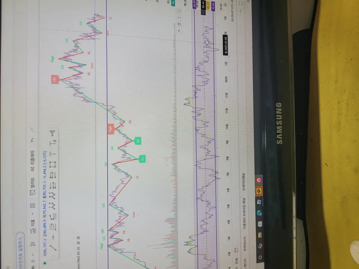 상승과 하락 거래량과 관련이잇으며 80프로 이상을 과매수 20프로이하를과매도라 합니다