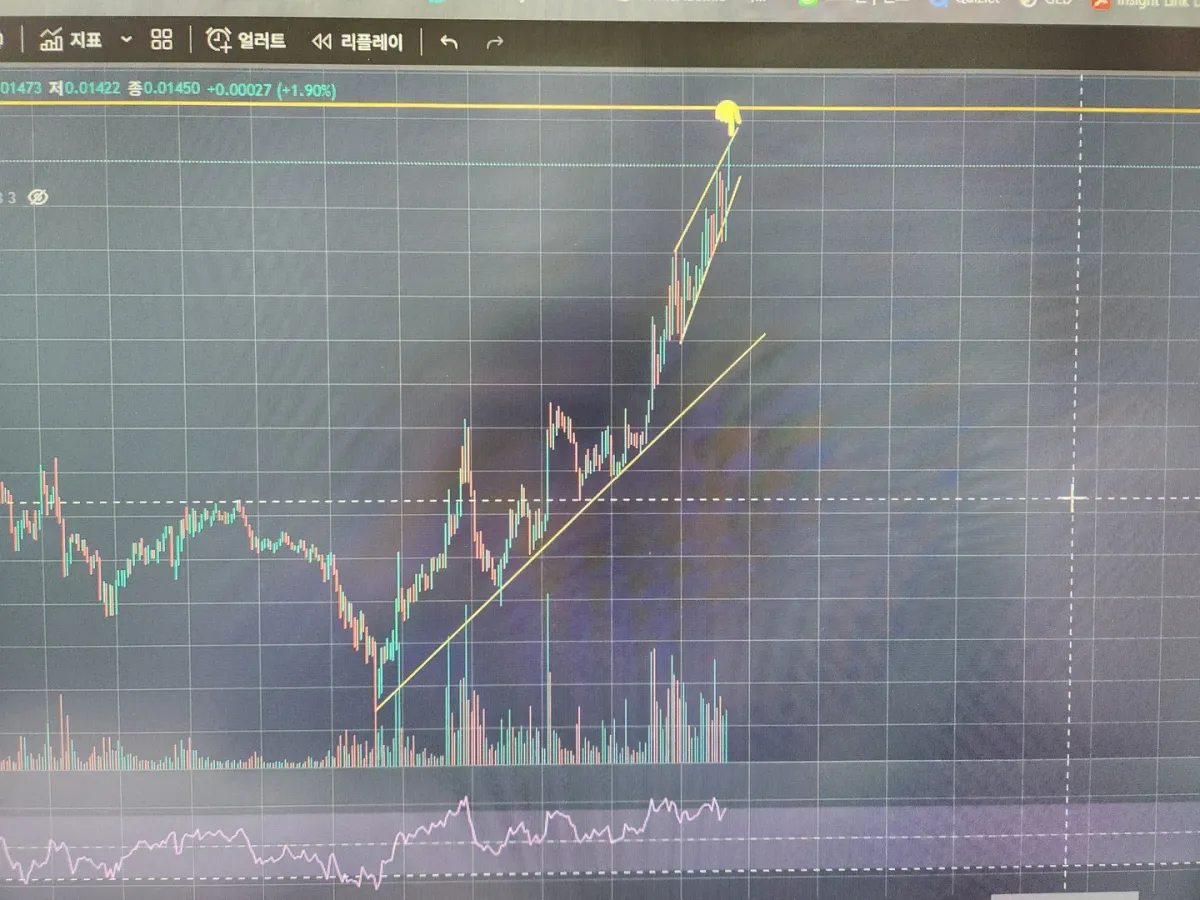 트레이딩뷰 추세선긋고 전고점표시도 수평선으로 작도해보았습니다. ^^ 숏포지션들어갔는데 수익중입니다. 밑의 추세선을 이탈시 더 확신있게 기다리겠습니다.