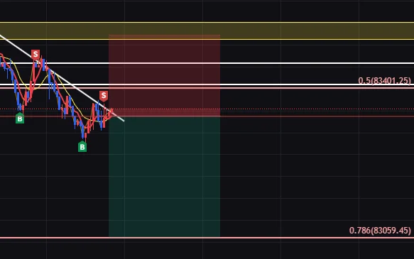 1분 봉의 경우 전체적인 하락세로 판단하였고 상승 저항선에서 추세가 꺾이는 것을 보고 진입(약간은 성급하게 진입한거 같은 느낌이긴 함)