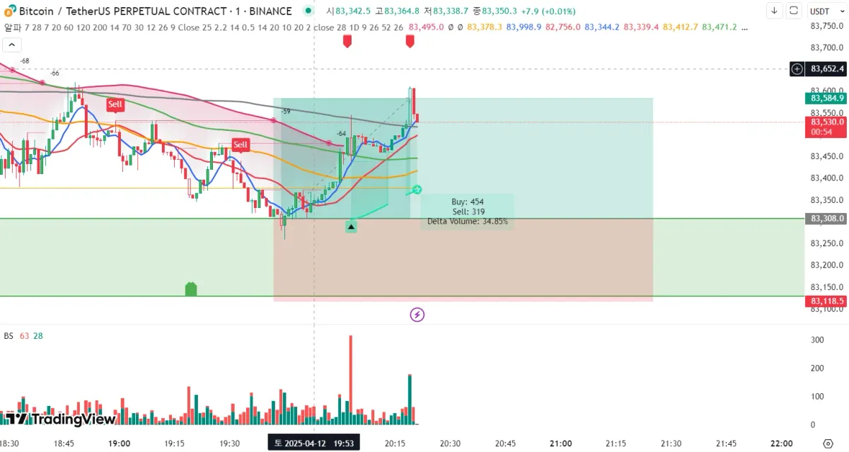 - 1분봉 강한 하락 후 첫 반등이 나온 고점
