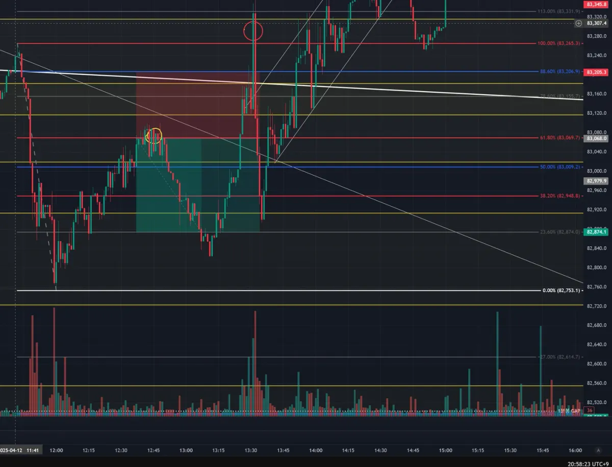 가격이 급락하다가 제가 표시해둔 30분 OB에서 급격히 반등이 나오는 것을 보고 있는데